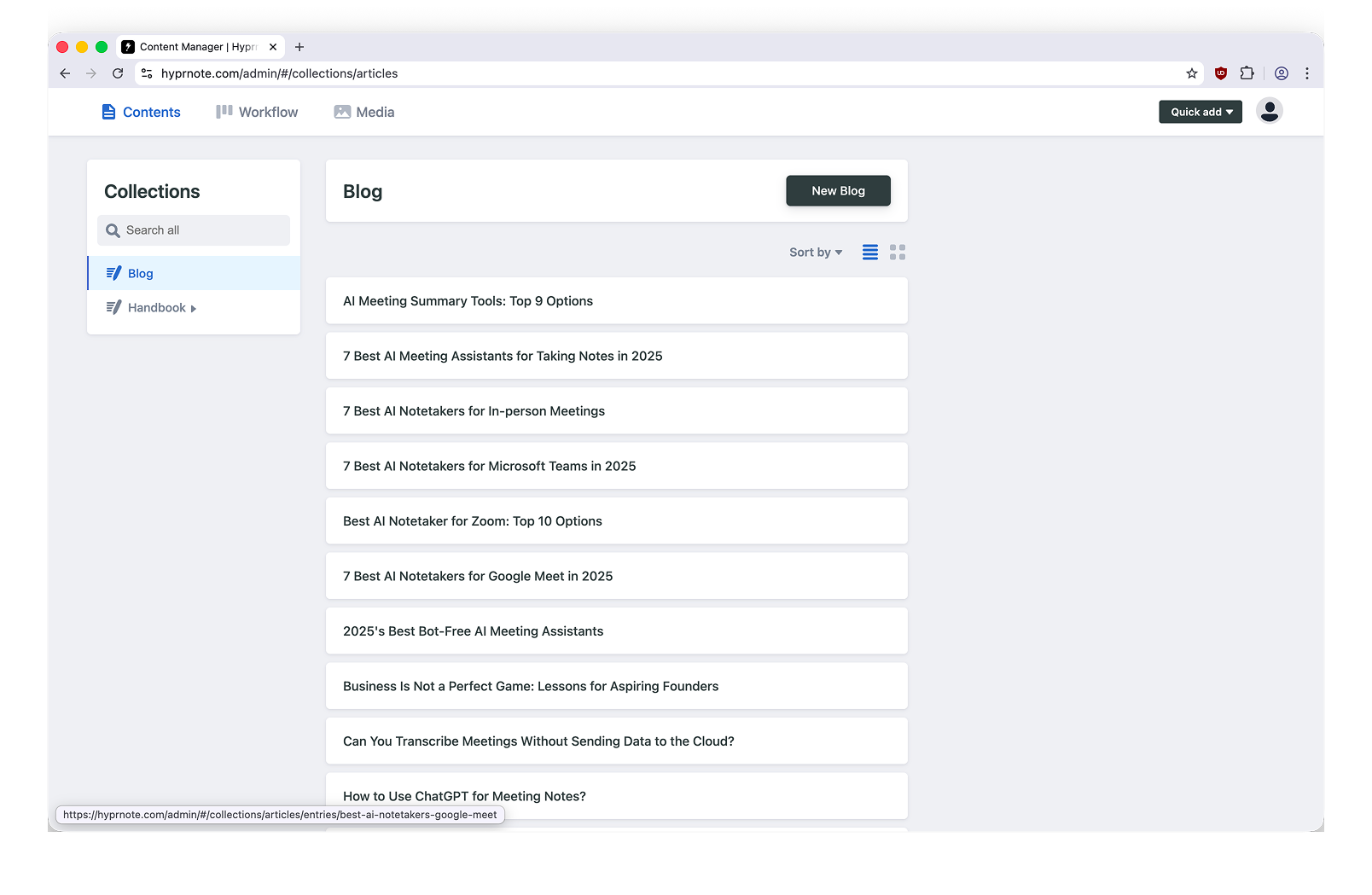 Developer — Config in apps/web/public/admin, accessible at https://hyprnote.com/admin (not in dev mode). GitHub backend with Netlify Git Gateway. Invite users at Netlify Identity.